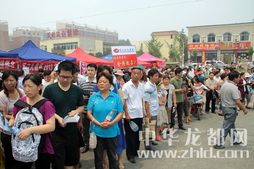 距離第一場(chǎng)考試結(jié)束還有10分鐘家長(zhǎng)們站在門(mén)口等候。