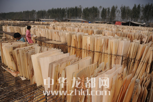 ????一進(jìn)入商水縣白寺鎮(zhèn)境內(nèi),你就會聞到新鮮木材散發(fā)的清香。公路沿線,白色板皮一望無際。一個鄉(xiāng)鎮(zhèn),一個產(chǎn)業(yè),一年實現(xiàn)產(chǎn)值20多億元。白寺鎮(zhèn)的板材加工業(yè),從20多年前的一兩家企業(yè),到現(xiàn)在的1000多家單板旋切廠,板材加工業(yè)已成為白寺鎮(zhèn)響當(dāng)當(dāng)?shù)钠放屏恕?/p>