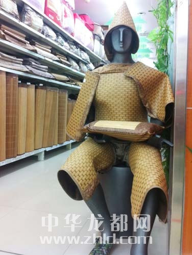 ??? 5月12日,記者在周口市區(qū)七一中路某大型超市看到,營(yíng)業(yè)員把多種涼席產(chǎn)品裝飾在一個(gè)坐姿模特身上,在人來(lái)人往的客流中,在營(yíng)業(yè)員招攬顧客的吆喝聲中,這位坐等客人上門的“蓑笠翁”不用說(shuō)一句話,卻賺足了市民眼球。晚報(bào)記者 徐松 攝