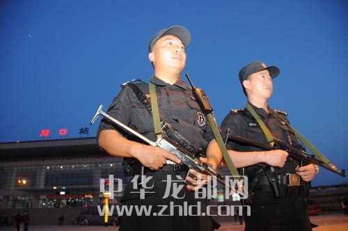 荷槍實(shí)彈的特警在火車站巡邏
