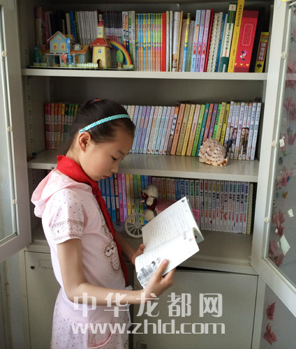 據(jù)了解,金株看得最多的是童話、文學類以及科普類書籍。金株有自己喜愛的作家,“楊紅櫻、曹文軒、伍美珍、郁雨君、楊鵬、沈石溪、黃蓓佳、湯素蘭、杰羅尼摩·斯蒂頓等等。”梁秀玲介紹,女兒剛上幼兒園的時候,自己給她買來《世界經(jīng)典童話》上下冊,每天給金株念。女兒5歲的時候,梁秀玲就鍛煉金株把講過的故事復述出來,慢慢地金株能把故事完整地復述。梁秀玲又帶她買了一些童話書鼓勵她自己看?!懊康街苣揖蜁е鹬耆ス鋾?,每次都要買書。她比較喜歡按照作者的系列叢書來收藏,現(xiàn)在家里的兩個書架都沒放下她的書,有300多本藏書?!?/p>