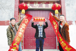 ????④ 近日,扶溝縣韭園鎮(zhèn)灣趙行政村家家戶戶張燈結(jié)彩喜迎新年,盼望羊年五谷豐登。圖為該村農(nóng)民趙晨潔與家人一起展示新買的春聯(lián)。
