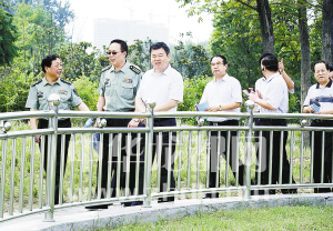 ????市委書(shū)記、市人大常委會(huì)主任、周口軍分區(qū)黨委第一書(shū)記徐光帶領(lǐng)市委、市人大、市政府、市政協(xié)和周口軍分區(qū)領(lǐng)導(dǎo)同志到全國(guó)八大國(guó)防教育主題公園之一——周口國(guó)防教育園參觀指導(dǎo)。(記者 沈湛 攝)