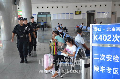 ????9月1日9時許,周口晚報記者在周口市火車站候車大廳,看到3名特警隊員正在執(zhí)勤。他們著裝統(tǒng)一,邁著整齊的步伐穿行于乘客之間。