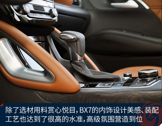 BX7的隔音材料總體夠足料,光在車門上就鋪設(shè)了兩個整圈+窗框上多半圈的密封隔音膠條,在這一價位的車型里絕對厚道。底盤的厚重感剛才提到了,高速行駛時無論風噪還是輪胎噪音,抑或發(fā)動機噪音都挺有節(jié)制的,稍微來點音樂就能掩蓋掉,因此這個車跑高速公路是讓人心情愉悅的,車內(nèi)安靜,而且非常平穩(wěn)。