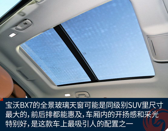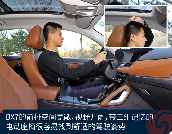 BX7是一款同時擁有5座、6座和7座布局的SUV車型,這款長度超過4.7米的SUV的確有能力在行李廂布置第三排座椅。不過這次我們試駕的車型仍是五座配置,對于這樣尺寸級別的SUV前后排空間自然都不是問題,相當寬闊而且乘坐感非常舒服。旗艦版的配置亦相當豐富,三溫區(qū)自動空調(diào)和前后排座椅加熱,以及同級別堪稱無敵的超大全景天窗,在配置方面很有吸引力,而再一次綜合其價格來看,明顯優(yōu)于同級別平均水平的標準配置再一次詮釋了“觸手可及的豪華”這一產(chǎn)品理念。