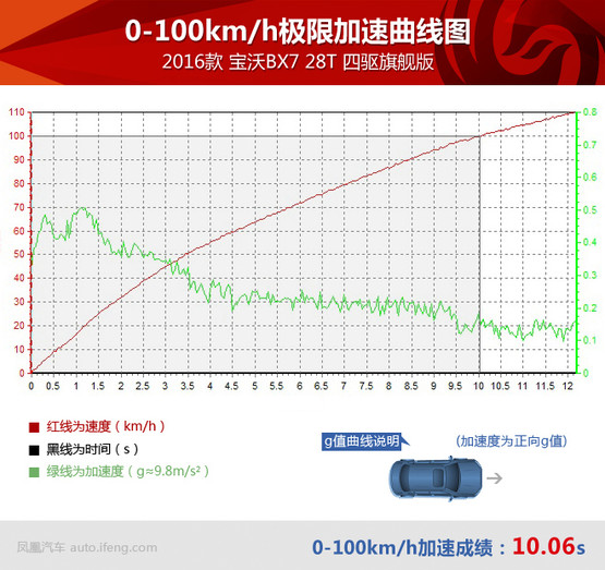 由于有四驅(qū)系統(tǒng)保障,寶沃BX7四驅(qū)版車型在全力加速起步瞬間非常平穩(wěn),6AT變速器換擋還是平穩(wěn)優(yōu)先,所以全力加速時升檔也沒有太明顯的頓挫、動力中斷或者不平順,整個過程很舒服,而10秒出頭的測試成績對于這臺2.0T動力的中型SUV也很不錯,請別忘了因為與變速器的匹配,這臺2.0T發(fā)動機的扭矩被限制在300牛頓·米,也就是說這臺“高功率”發(fā)動機其實并沒使出全力,我們完全有理由相信解除封印后它理應跑得更快。