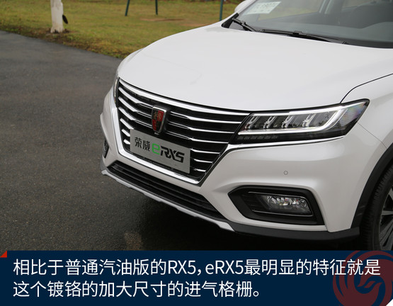榮威eRX5的外觀設(shè)計(jì)來自于上汽榮威家族最新的“律動(dòng)設(shè)計(jì)”語(yǔ)言,整體外觀呈現(xiàn)出的是“鯨頭燕尾”的特點(diǎn)。通過車頭下壓、腰線勾勒、尾部?jī)?nèi)切等設(shè)計(jì),詮釋了“律動(dòng)”的美學(xué)理念。與汽油版RX5相比,車頭的鍍鉻前格柵尺寸更加大,造型更為舒展,與大燈融為一體。eRX5基于RX5采用的SSA+平臺(tái)打造,提供了插電版與純電版兩個(gè)版本,這兩款車實(shí)際幾乎是同時(shí)開發(fā)的,尺寸方面更是一模一樣。插電版的eRX5車身兩側(cè)分別為加油口和充電口,純電動(dòng)續(xù)航60公里,綜合續(xù)航650公里。車身隨處可見新能源的標(biāo)識(shí),并且還擁有新能源的專屬顏色銀葉金。