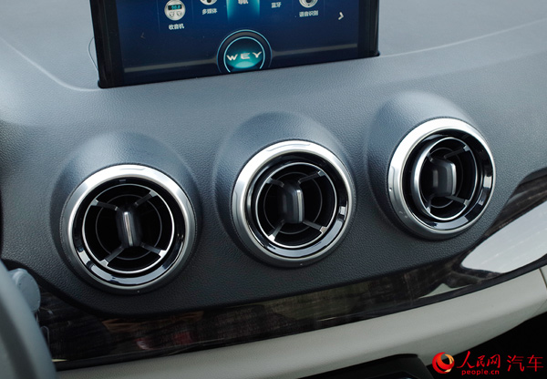 坐進(jìn)車內(nèi),或許能更直觀地感受到長城為WEY品牌的首款車型所營造的豪華氛圍?;蛟S“豪華”二字并不是最準(zhǔn)確的形容詞,因為VV7的內(nèi)飾設(shè)計更多地傳遞了一種科技感。大傾斜角度的中控臺上,有著寬大的飾板區(qū)分上下兩層,圓形的空調(diào)出風(fēng)口設(shè)計巧妙且有型,給你不錯的印象。