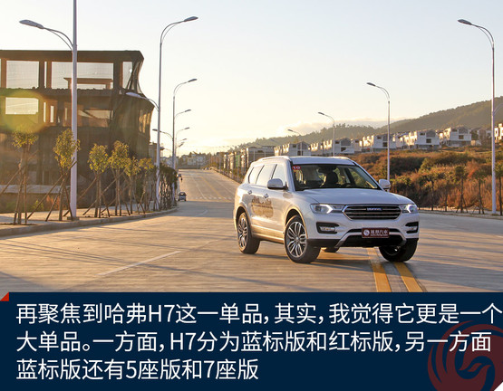 再聚焦到哈弗H7這一單品,其實(shí),我覺得它更是一個(gè)大單品。一方面,H7分為藍(lán)標(biāo)版和紅標(biāo)版,另一方面,藍(lán)標(biāo)版還有5座版和7座版。關(guān)于定位,紅標(biāo)5座,大氣、豪華;藍(lán)標(biāo)5座,時(shí)尚、運(yùn)動(dòng);藍(lán)標(biāo)7座,沉穩(wěn)、硬朗。據(jù)悉,未來不排除推出紅標(biāo)7座版車型,具體需要根據(jù)市場(chǎng)反饋來決定。