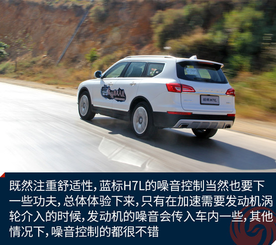既然注重舒適性,藍(lán)標(biāo)H7L的噪音控制當(dāng)然也要下一些功夫,總體體驗(yàn)下來,只有在加速需要發(fā)動(dòng)機(jī)渦輪介入的時(shí)候,發(fā)動(dòng)機(jī)的噪音會(huì)傳入車內(nèi)一些,其他情況下,噪音控制的都很不錯(cuò)。