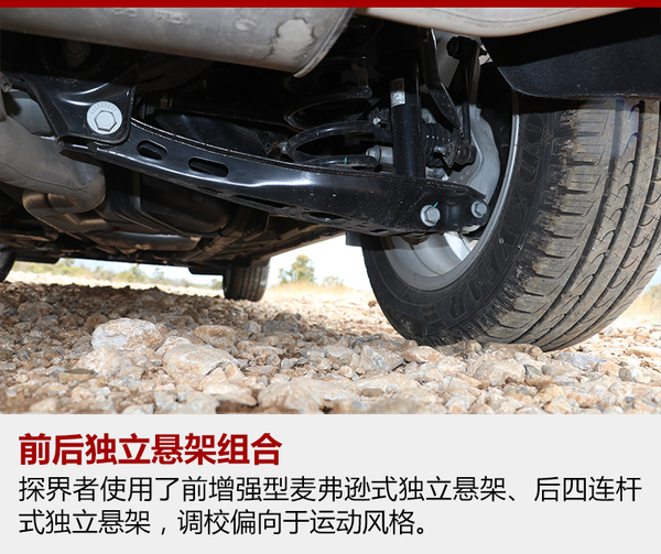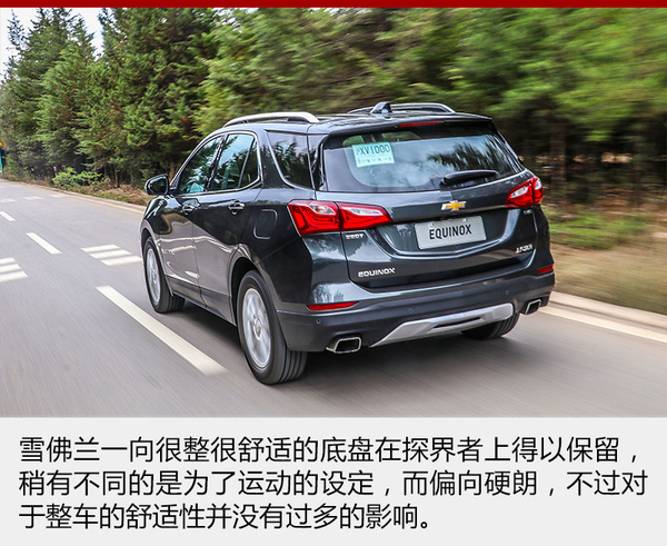 探界者的底盤受到雪佛蘭運(yùn)動(dòng)傾向的影響,被調(diào)校的有些偏硬,這樣對于車身側(cè)傾的抑制就非常到位,面對路面上連續(xù)的起伏,緊致的懸架也帶來很強(qiáng)的整體感。但是當(dāng)面對較大的顛簸或者減速帶一類的時(shí)候,車身就會(huì)產(chǎn)生彈跳的感覺,而且懸架的回彈稍有延遲,總有一次小幅度的二次彈跳,稍稍影響了舒適性。