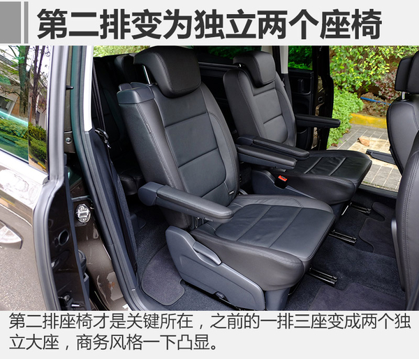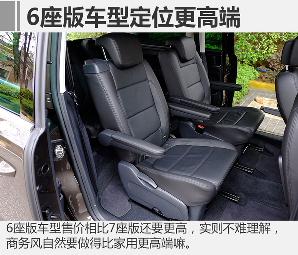6座版本車型設(shè)定少了一名乘客,所以其乘坐空間則變得更加從容,更適合商務(wù)接待的布局、更舒適的第二排座椅以及后排更從容的上下車方式,令其更適合商務(wù)場合。還記得我之前提出的商務(wù)化問題嗎?接著看。最后給你答案。
