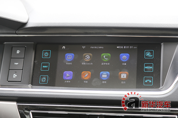 7英寸多媒體顯示屏采用觸控式操作,實(shí)際測(cè)試靈敏度較高,集成導(dǎo)航、藍(lán)牙等功能。后視鏡加熱按鍵被設(shè)置在了下方控制區(qū)。