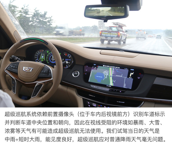 ????????超級(jí)巡航系統(tǒng)通過(guò)GPS定位的高精度地圖和車載攝像機(jī)定位和識(shí)別行駛路徑并判斷車輛所在的車道,所以遇到暴雨、大霧或沙塵等影響攝像頭工作的天氣,或者駛?cè)胨淼雷钄郍PS信號(hào)的時(shí)候,超級(jí)巡航系統(tǒng)的使用可能受到影響。雖然這些突發(fā)狀況可能會(huì)導(dǎo)致超級(jí)巡航功能在行駛中突然推出,但不必?fù)?dān)心安全問(wèn)題,系統(tǒng)會(huì)及時(shí)提示駕駛者接管汽車,其邏輯與駕駛者“失能”的提醒流程幾乎相同,駕駛員有從容的時(shí)間反應(yīng)并接管汽車。