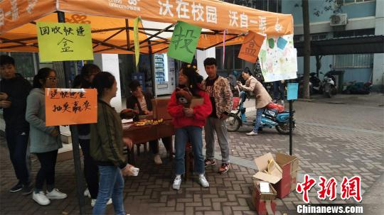 ????為調(diào)動學(xué)生的參與度,該活動實施過程中還設(shè)置了抽獎環(huán)節(jié)。只要拿著快遞盒子前往站點便可獲得抽獎機會,獎品大到毛絨熊,小至糖果等。