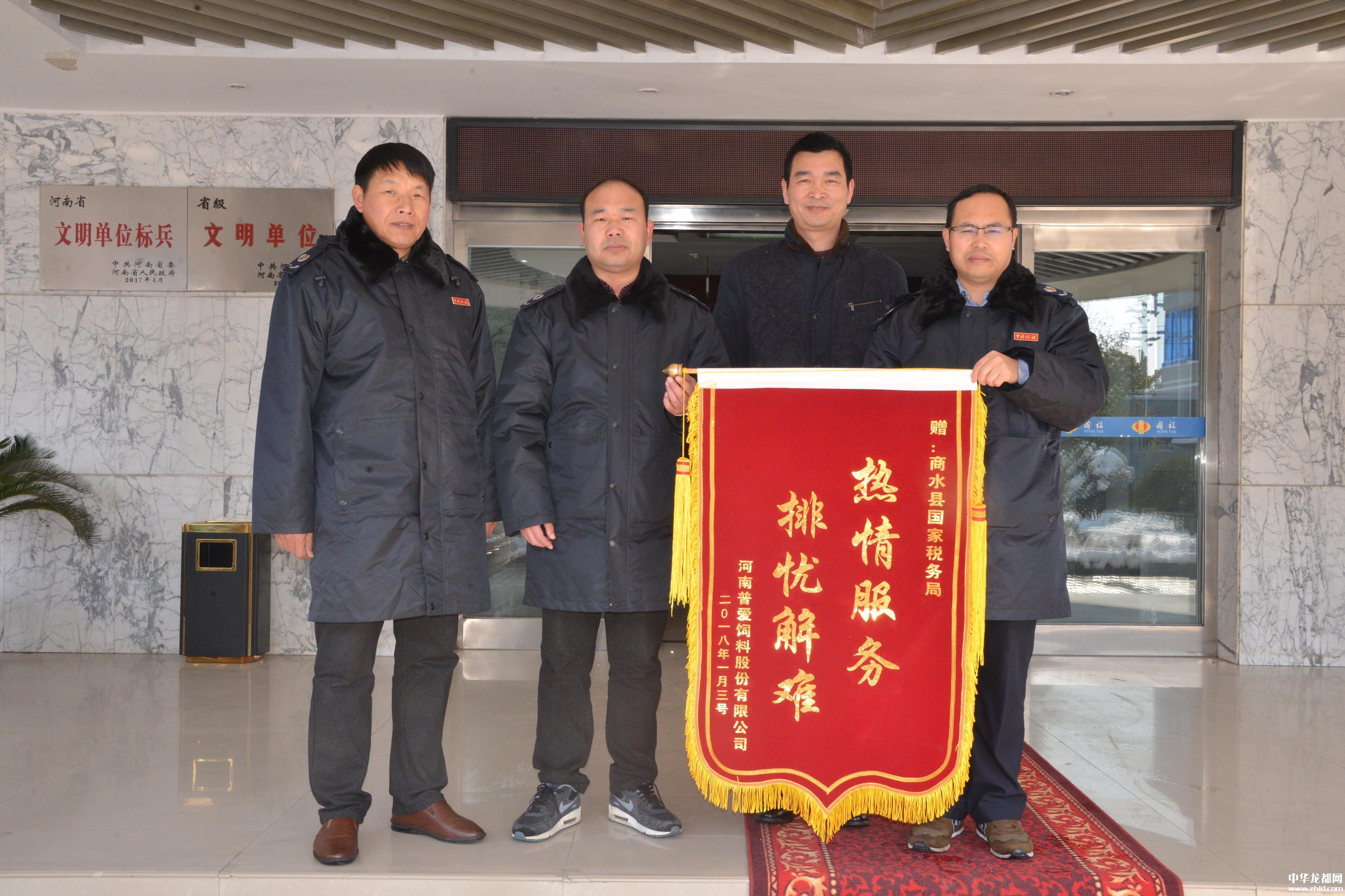 中華龍都網(wǎng)訊(周口報業(yè)全媒體記者 付永奇 通訊員 李媛媛)1月8日,河南普愛飼料股份有限公司的財務(wù)人員將一面印有“熱情服務(wù)排憂解難”的錦旗送到商水縣國稅局,感謝辦稅服務(wù)廳工作人員急納稅人之所急、想納稅人之所想,為他們提供細致、周到、高效的辦稅服務(wù)。