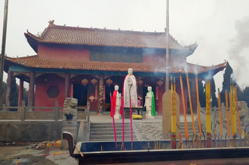 在西華這片古老又神秘的土地探尋盤古女媧創(chuàng)世文化,自然少不了拜謁昆山女媧宮。這座宮殿位于西華縣昆山辦事處山子頭村,因?yàn)閭髡f這里是女媧的居住地,所以在西華人心目中有著不可替代的地位。2018年元旦前夕,我們驅(qū)車前往,進(jìn)入山子頭村一路西行直達(dá)盡頭,女媧宮就赫然于眼前了。待記者在宮門前站定,不經(jīng)意回望來路,竟發(fā)現(xiàn)眼前是一條坡度明顯的下坡路。見記者詫異,一旁的村民笑著說:“山子頭嘛,就是說這里是山嶺的頭兒,女媧宮就在最頂上?!?/p>