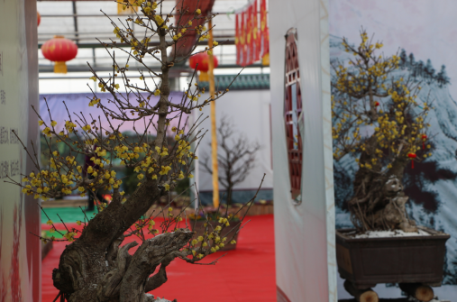 今天上午,大河客戶端記者在梅花展廳看到,不同品種的梅花被做成了盆景造型,配以雪花、茅屋、窗臺點(diǎn)綴,形成一道道獨(dú)特的景觀。怒放的花朵、含羞的花苞,數(shù)千平米的展廳內(nèi)香氣四溢,惹得游人如癡如醉。