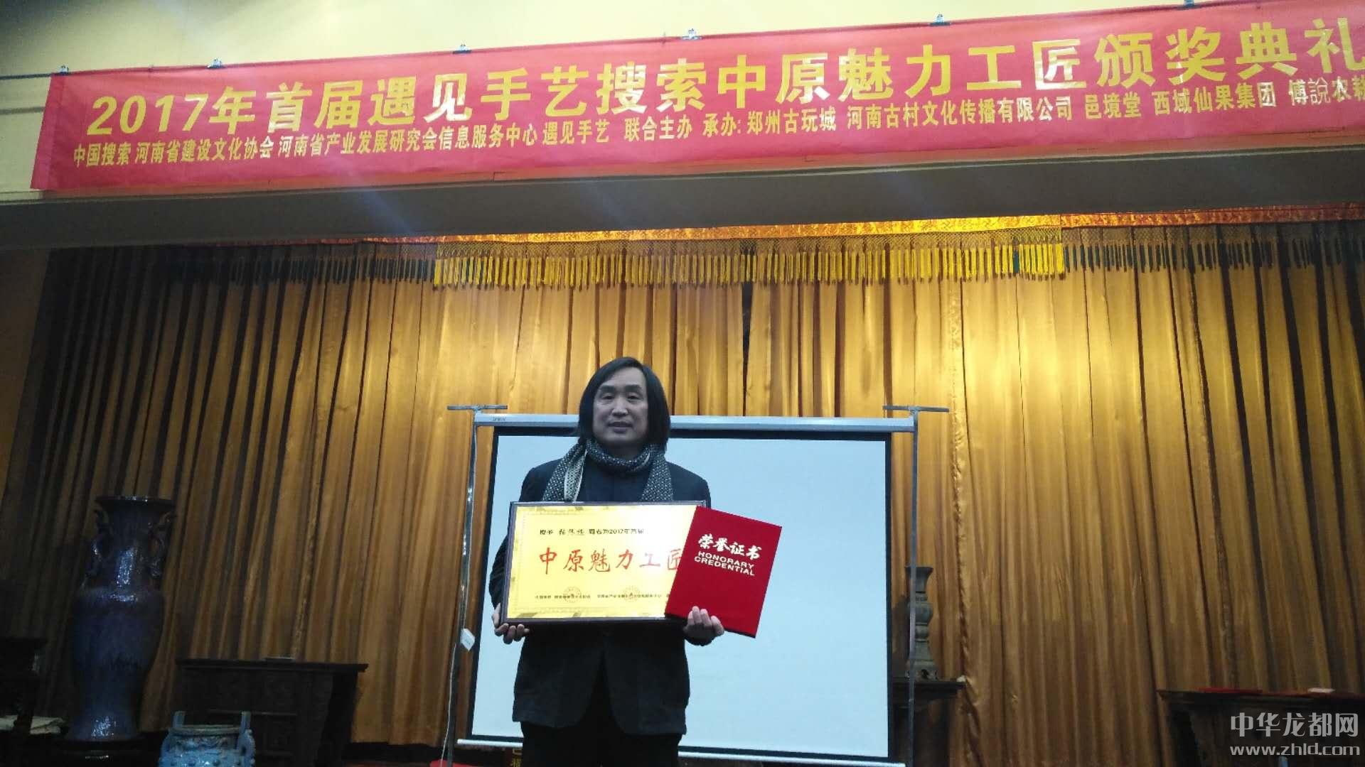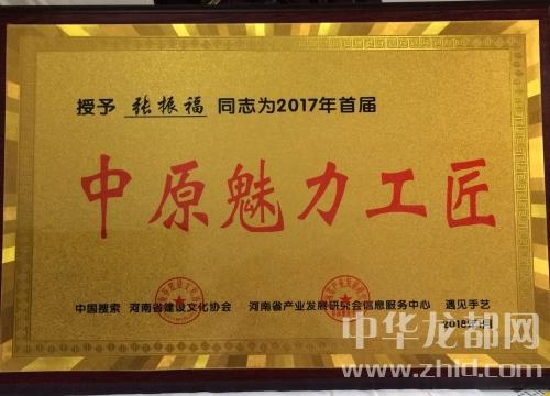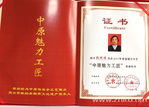 經2017首屆中原魅力工匠評審工作委員會認真初評、終評、綜合打分,最終張振福泥塑作品《老來伴》在推選活動中榮獲“金獎”。張振福等27位藝術家榮獲“中原魅力工匠”榮譽稱號。張振福作為民間藝術家代表在頒獎典禮上作了唯一的典型發(fā)言即“獲獎感言”。