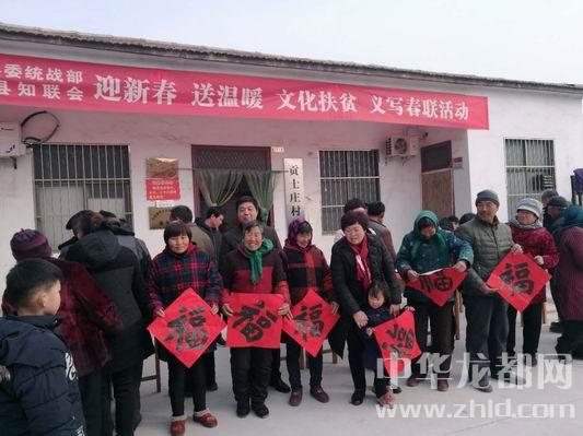 在村委院內(nèi),縣政協(xié)副主席、縣知聯(lián)會會長孫春花和書法家們一起,冒著嚴(yán)寒,為貧困群眾義務(wù)書寫春聯(lián)。在新春來臨之際,孫主席揮毫潑墨,為貧困群眾書寫新春的祝福語。她帶領(lǐng)大家給貧困群眾送上大寫的“福”字,表達(dá)對貧困群眾的美好祝愿和早日脫貧致富的期盼。