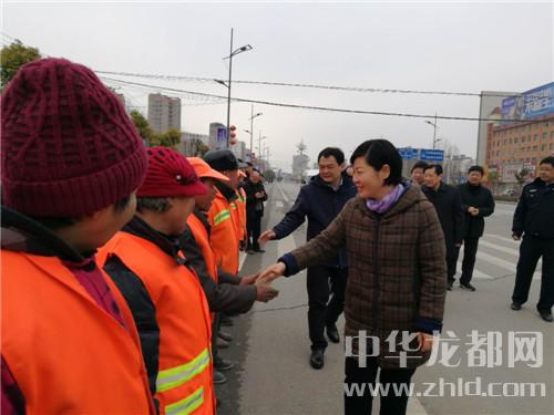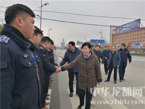 在鄲城縣城新華路與迎賓大道路口,羅文閣、李全林和一線值勤的環(huán)衛(wèi)工人、城管隊(duì)員一一握手,深切關(guān)心環(huán)衛(wèi)工人和城管隊(duì)員的冷暖?!翱词侄鄾?,要穿厚點(diǎn)兒呀。大年三十了,你們放棄和家人團(tuán)圓吃餃子的機(jī)會(huì),在為我們的縣城保潔,我們城市的清潔有賴于你們。你們辛苦了,給你們拜個(gè)年,祝你們身體健康。”羅文閣向環(huán)衛(wèi)工人遞上慰問(wèn)金時(shí),樸實(shí)的話語(yǔ)、殷殷的關(guān)懷把黨的溫暖涌向環(huán)衛(wèi)工人的心窩兒。“不辛苦,領(lǐng)導(dǎo)來(lái)看俺,俺里比吃餃子暖和。”環(huán)衛(wèi)工人邊鼓掌邊道出了內(nèi)心的激動(dòng)。