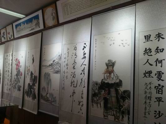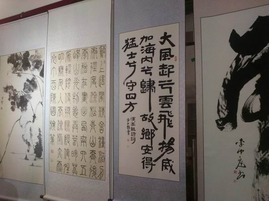 本次書畫展由中共沈丘縣委宣傳部、縣文聯(lián)主辦,縣書協(xié)、縣美協(xié)承辦,展出我縣書畫家創(chuàng)作的書畫精品一百多幅。書法作品五體俱全,其中范曉公、高望、李少華等人的行草書;陳國(guó)旗的小篆;李中魁、劉景的隸書;趙東明、李勇的楷書各具風(fēng)采,引人注目。國(guó)畫作品花鳥、人物、山水皆有,青年畫家吳帆的《鐘馗圖》孔武有力、王志全的《翠竹》》筆墨精到、女畫家海納的《山水》氣勢(shì)磅礴,老畫家王蒞泉的《貓蝶嬉戲》功力深厚。