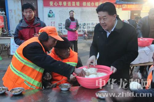 中華龍都網訊(周口報業(yè)全媒體記者 馬治衛(wèi) 通訊員 徐孫楊)3月20日早,新疆河南總商會會長朱軍一行從新疆專程趕往太康,為該縣“愛心早餐”工程捐款10萬元,并親自為環(huán)衛(wèi)工人端菜送饅頭,并向志愿者和環(huán)衛(wèi)工致以親切地慰問。