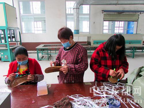 卞路口鄉(xiāng)高山店村的一家鞋廠,留守婦女正在加工鞋底。該縣在扶貧攻堅中,通過實施資金幫扶、技術(shù)培訓等措施幫助貧困群眾、返鄉(xiāng)農(nóng)民工創(chuàng)辦玩具廠、制鞋廠等微型企業(yè),為周邊群眾提供了就業(yè)崗位。