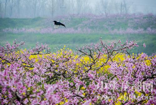 潁河、沙河、賈魯河三條主干河流貫穿西華全境,甘甜的潁河水滋潤了黃橋鄉(xiāng)潁河兩岸萬畝桃園,每年3月底至4月上旬,潁河兩岸桃花盛開,與樹下金燦燦的油菜花、綠油油的麥苗相映成畫,紅、黃、綠構(gòu)成了五彩斑斕的人間仙景。置身其中,花香沁人心脾,色彩絢麗奪目,景色美不勝收,猶如身處陶淵明筆下的“世外桃源”。