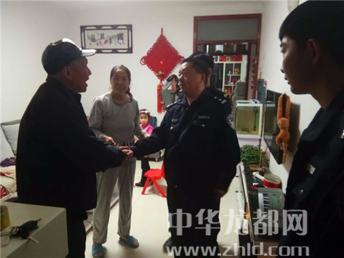民警一邊安撫老人情緒,一邊進(jìn)一步與老人溝通,得知其子名叫趙冬明,在周口市開發(fā)區(qū)地稅局工作。老人沒有記住家人電話、無法聯(lián)系,民警于是開車將老人送至周口市開發(fā)區(qū)地稅局家屬院,經(jīng)多方打聽終于找到老人兒子趙冬明家,將老人安全送到家中。老人激動(dòng)的熱淚盈眶,并向民警表示感激。