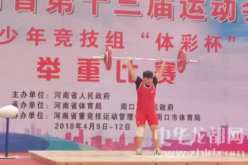 中華龍都訊(記者姬慧洋文/圖)4月9日下午,省十三運會青少年競技組舉重比賽女子乙組+69公斤級比賽在周口市體育中心開賽,來自全省的10位選手經(jīng)過激烈角逐,17歲周口小將林翠愛以抓舉75公斤、挺舉95公斤,總成績170公斤的戰(zhàn)績,為周口代表隊再添一金。