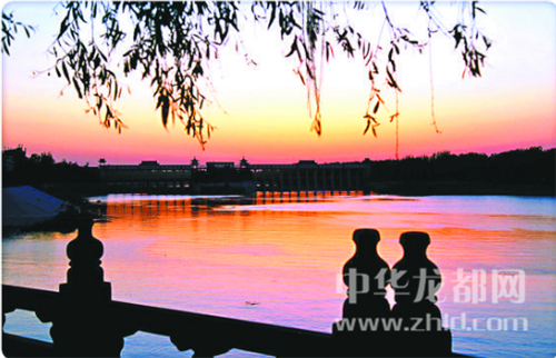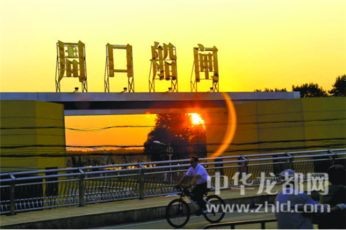 落日余暉下的沙潁河一片靜謐,掩映在夕陽下的周口大閘,更是美輪美奐,讓人流連忘返。