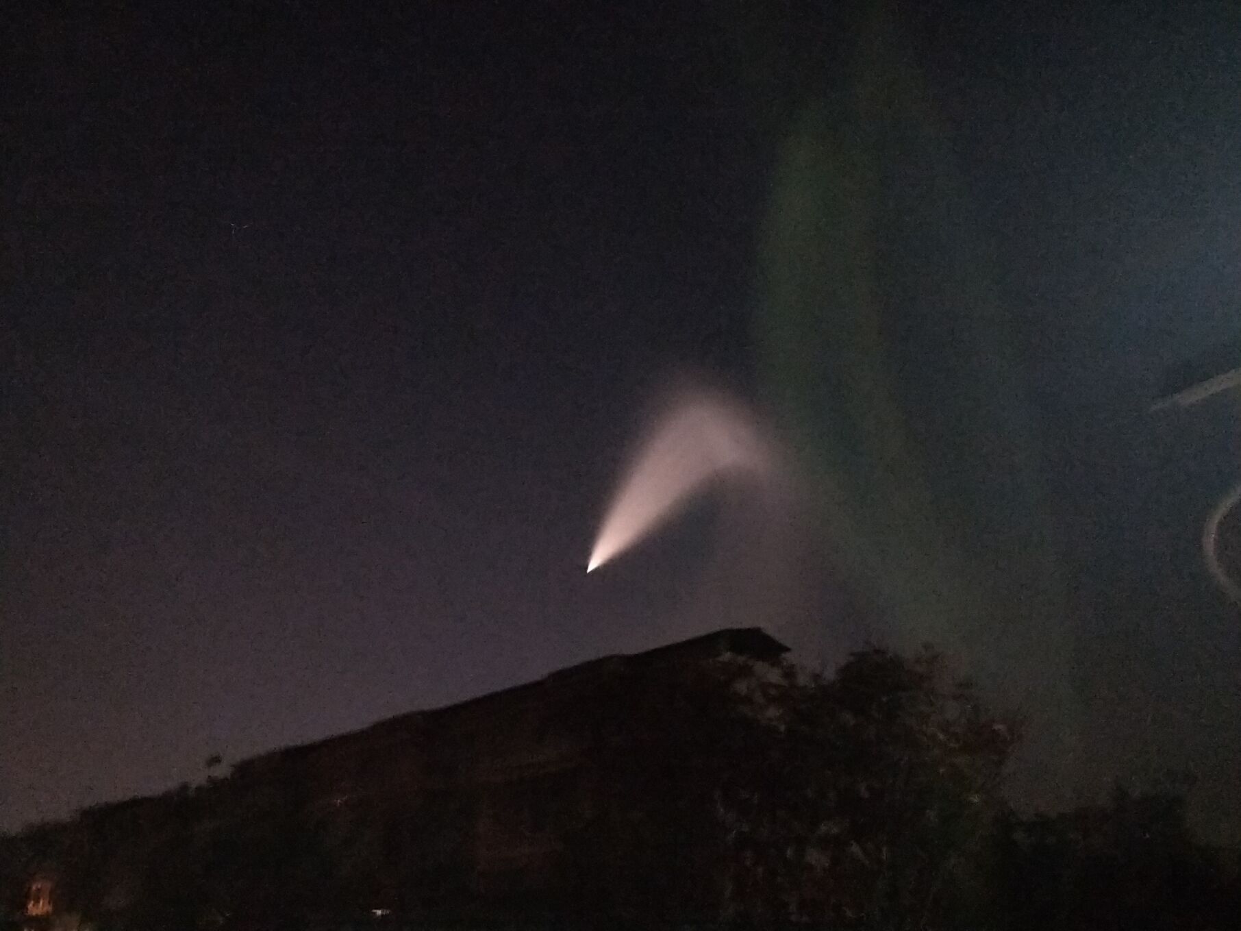 對于這個場景,正在周口市西華縣出差的河南省文聯工作人員王建坡也看到了。他給大河報·大河客戶端記者發(fā)來的圖片顯示,天空西北方向有一道扇形亮光,好像誰家的手電筒被扔到了天上。