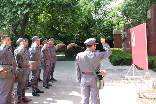 在為期4天的培訓中,新縣傳承紅色培訓中心采取了理論教學、現(xiàn)場教學、體驗式教學等多種教學形式,組織參訓學員既聆聽了信陽市委黨校、副教授趙明為大家作了題為《大別山敢于擔當?shù)母锩窦捌洮F(xiàn)實啟迪》的學習輔導報告理論授課,參訓學員又實地到鄂豫皖蘇區(qū)烈士紀念館、中共中央鄂豫皖分局舊址、紅四方面軍總部舊址、鄂豫皖蘇區(qū)首府革命博物館、將帥館、新縣箭廠河鄉(xiāng)的“紅田”慘案遺址、列寧小學舊址、湖北省紅安縣七里坪長勝街等地進行現(xiàn)場教學,祭奠革命英烈,向革命烈士敬獻了花籃、重溫了入黨誓詞,重溫鄂豫皖革命根據(jù)地的革命歷史,感受大別山革命精神的偉大與崇高,接受革命精神對靈魂的洗禮。
