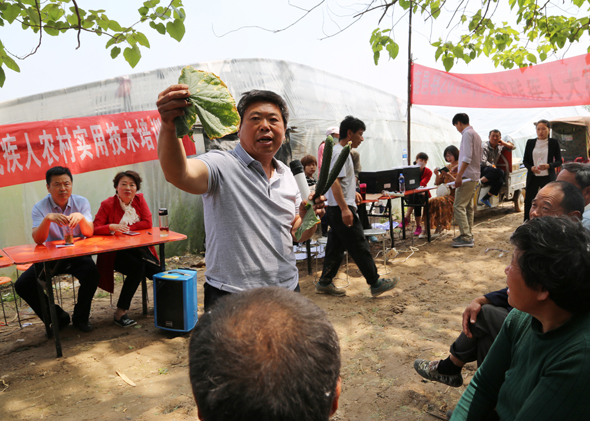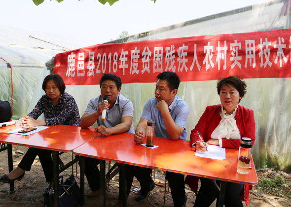 5月10日,在鹿邑縣馬鋪鎮(zhèn)完樓村殘疾人士付天軍的培訓(xùn)基地——蔬菜種植合作社助殘大棚內(nèi),來自鹿邑縣馬鋪鎮(zhèn)、渦北鎮(zhèn)產(chǎn)業(yè)集聚區(qū)的150多名建檔立卡貧困殘疾人,齊聚這里免費(fèi)學(xué)習(xí)黃瓜種植技術(shù),付天軍在大棚內(nèi)手把手地進(jìn)行指導(dǎo),來自華陽學(xué)校的農(nóng)業(yè)專家李中蘭也應(yīng)邀在大棚內(nèi)對常見的病蟲害進(jìn)行詳細(xì)講解。