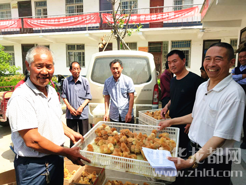 本次為簽約的建檔立卡貧困戶發(fā)放雞苗3000只,這標(biāo)志著丁偉先生助力家鄉(xiāng)脫貧攻堅落到了實處。