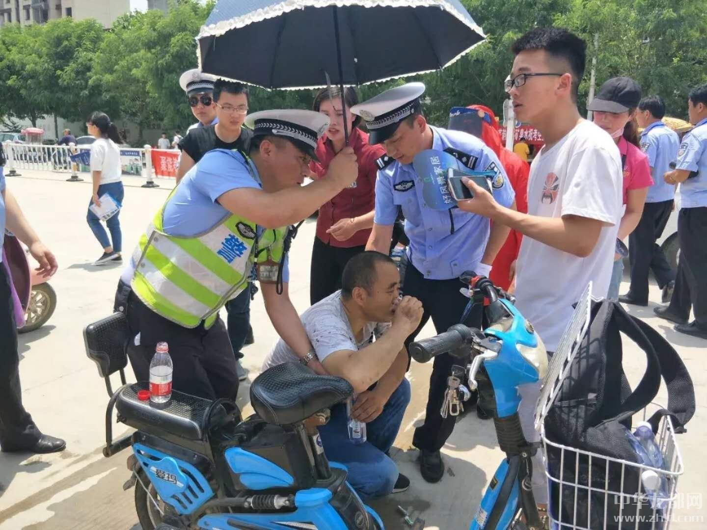 當(dāng)日上午12時許,在沈丘縣一高大門口附近等待的一名考生家長癱坐在路邊,臉色蒼白,看起來身體極其不適。正在執(zhí)勤的劉濤見狀,一邊上前對車流、人流進(jìn)行疏導(dǎo),避免圍觀群眾太多引發(fā)意外事故,一邊迅速聯(lián)系沈丘縣人民醫(yī)院120急救車迅速前來搶救。