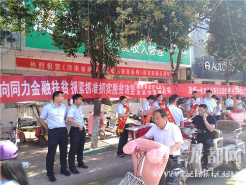 中華龍都網(wǎng)訊(周口報業(yè)全媒體記者 李瑞才 通訊員 任留兵)6月12日上午,鹿邑縣金融辦、縣公安局、縣扶貧辦及轄區(qū)各大銀行,在縣政府大門東側(cè)集中宣傳并向過往市民詳細(xì)講解小額信貸惠民政策和防范非法集資知識,希望通過政策引領(lǐng)助力廣大群眾實現(xiàn)創(chuàng)業(yè)創(chuàng)收夢想??h委書記梁建松、常務(wù)副縣長陸志杰到活動現(xiàn)場指導(dǎo)工作。各脫貧攻堅責(zé)任銀行行長及縣金融辦工作人員現(xiàn)場接受群眾咨詢,氣氛非常熱烈,取得了良好的宣傳效果。