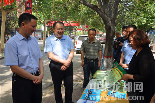 縣委常委、常務(wù)副縣長(zhǎng)胡國(guó)勝、副縣長(zhǎng)單義在縣安監(jiān)局局長(zhǎng)惠建宏的陪同下,和市民一起參觀宣傳展臺(tái)。