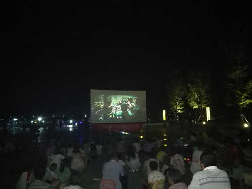 “這清楚,比原來(lái)的老式露天電影清楚多了。坐到電影機(jī)前才看到,這跟電影院里的機(jī)器一樣,是數(shù)字電影,沒(méi)有膠帶的。晚上出來(lái)涼快涼快,沒(méi)想到還能看大片兒,這都是愛(ài)國(guó)的大片兒,兩個(gè)孩子正好今天放假,我把他們都帶來(lái)了?!笔忻穸∠壬吲d地說(shuō)。