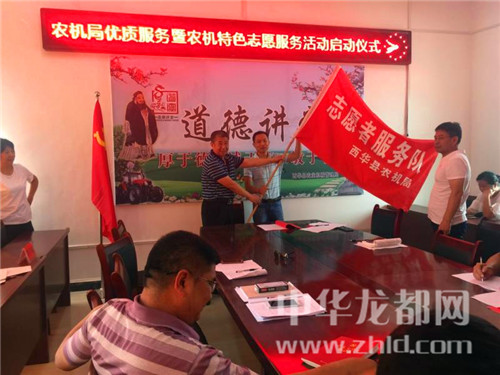 中華龍都網(wǎng)訊(周口報(bào)業(yè)全媒體記者 張猛 通訊員 李劍鋒)為推進(jìn)農(nóng)機(jī)化工作向縱深開展,全面營造農(nóng)機(jī)服務(wù)“三農(nóng)”的濃厚氛圍,進(jìn)一步深化市級(jí)文明單位創(chuàng)建活動(dòng),6月26日上午,西華縣農(nóng)機(jī)局舉行優(yōu)質(zhì)服務(wù)暨農(nóng)機(jī)特色志愿服務(wù)活動(dòng)啟動(dòng)儀式。