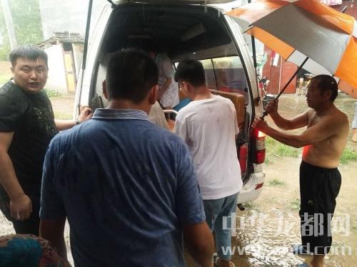 下午五點五十五分,鄲城縣第二人民醫(yī)院救護(hù)車到達(dá)現(xiàn)場。在經(jīng)過醫(yī)護(hù)人員的檢查后,建議送到醫(yī)院進(jìn)一步治療。此時,大雨如瓢潑一般,幫扶隊員羅明飛等人不顧大雨傾盆,抬擔(dān)架,打雨傘,將病人王洪花抬上了救護(hù)車,羅明飛等人全身的衣服和鞋襪全部濕透。
