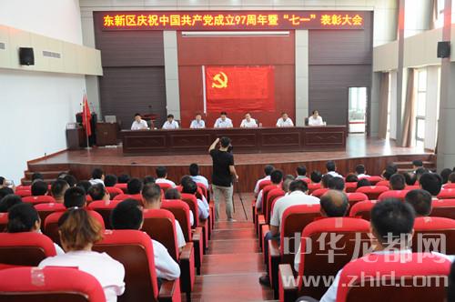 本報(bào)訊 (記者 張勁松 通訊員 王艷霞 文/圖) 6月22日,東新區(qū)召開(kāi)慶祝中國(guó)共產(chǎn)黨成立97周年暨表彰先進(jìn)大會(huì)(如右圖)。東新區(qū)黨工委書(shū)記閆立超出席會(huì)議并講話,東新區(qū)全體班子成員在主席臺(tái)就座。區(qū)直機(jī)關(guān)全體科級(jí)干部,各鄉(xiāng)(辦)書(shū)記、副書(shū)記、組織委員和組織干事,基層行政村(社區(qū))黨支部書(shū)記、2018年新黨員代表以及受到表彰的先進(jìn)基層黨組織負(fù)責(zé)人、優(yōu)秀黨務(wù)工作者、優(yōu)秀基層黨支部書(shū)記和優(yōu)秀共產(chǎn)黨員等共計(jì)170余人參加會(huì)議。會(huì)議由東新區(qū)管委會(huì)主任張建黨主持。