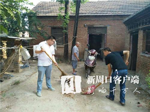 如果環(huán)境衛(wèi)生保持不好,村民的院落就成了滋生蚊蟲的“溫床”。24日早上,大家再一次來到張龐村,宣傳扶貧攻堅、“六村共建”等政策,動手幫群眾打掃院落衛(wèi)生,趁天好幫村民曬糧食。副部長宋斌在走訪時聽說貧困戶劉金才近日肺病復(fù)發(fā),呼吸困難,“心里上不來氣兒”,趕緊撥打“120”,聯(lián)系鎮(zhèn)衛(wèi)生院醫(yī)生接診,并和駐村第一書記霍輝、駐村隊員李富軍、幫扶隊員張志華、郭威自掏腰包,湊了500塊錢交到劉金才老伴手里,解了燃眉之急。