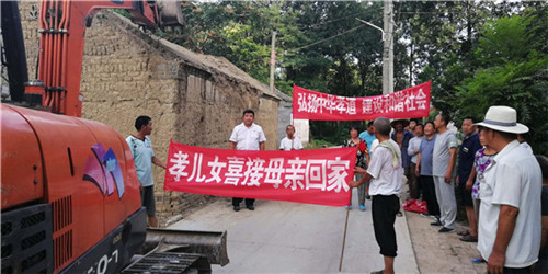 當(dāng)日早上,秋渠鄉(xiāng)高小橋行政村牛橋和孫大莊自然村,鄉(xiāng)村干部打著橫幅、孝順兒、媳胸帶紅花,用架子車?yán)先耍竺娓鴩^的村民,通過隆重“接老人回家”活動(dòng),激勵(lì)更多人孝老愛親。