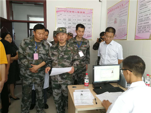 8月7日,周口軍分區(qū)司令員王善沖到扶溝縣人民醫(yī)院現(xiàn)場(chǎng)檢查指導(dǎo)征兵體檢工作,看望體檢工作人員和應(yīng)征青年。