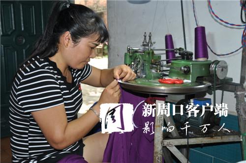 今年以來,商水縣實施精準扶貧,大力發(fā)展服裝代加工,讓不能外出打工的貧困群眾從工廠領(lǐng)回設(shè)備和原材料在家加工,廠方上門進行技術(shù)指導(dǎo)并回收成品。圖為該縣巴村鎮(zhèn)董村村民使用廠方提供的毛衣編織機在家加工羊毛衫。