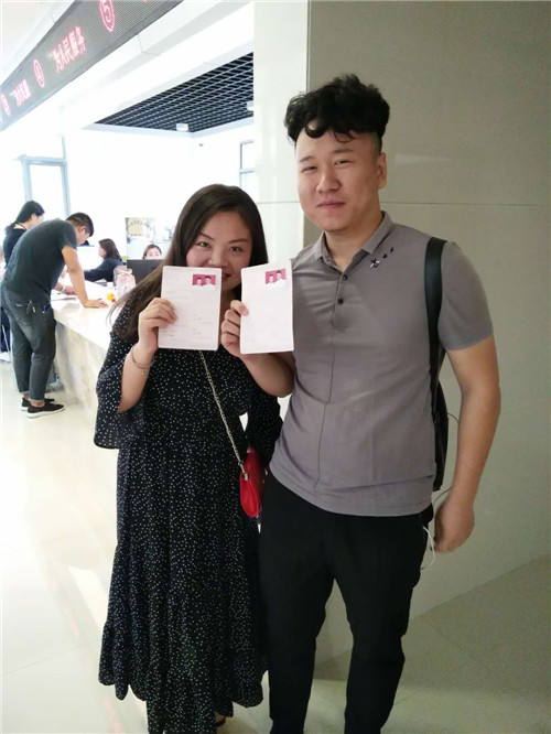 市民劉麗(化名)和男友相識(shí)多年,他們從朋友發(fā)展到戀人,今天一早就來(lái)排隊(duì)領(lǐng)證,拿到紅彤彤的結(jié)婚證,二人臉上露出幸福的笑容?!捌呦κ侵袊?guó)的情人節(jié),今天領(lǐng)證很浪漫,以后每年的七夕,都是我們的結(jié)婚紀(jì)念日。” 劉麗說(shuō)。