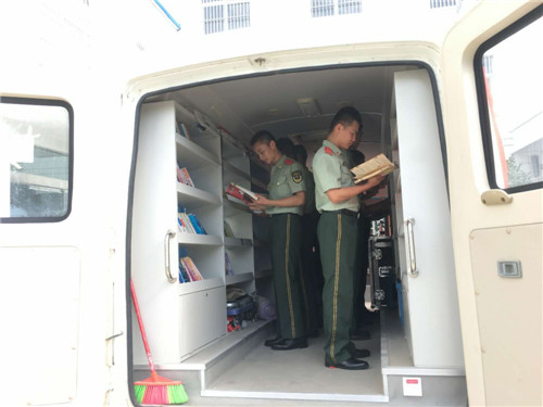 文化擁軍是商水縣圖書(shū)館的優(yōu)良傳統(tǒng)。當(dāng)天,流動(dòng)圖書(shū)車(chē)一來(lái)到縣武警中隊(duì)駐地,士兵們便不約而同圍了過(guò)來(lái),有的走上圖書(shū)車(chē)尋找喜愛(ài)的圖書(shū),有的則直接坐在車(chē)上,認(rèn)真翻閱書(shū)籍。戰(zhàn)士小劉表示:“我最喜歡人物傳記方面的圖書(shū),今天他們送來(lái)了許多。我要充分利用這些圖書(shū),讀好書(shū)、立好志、當(dāng)好兵,為實(shí)現(xiàn)中國(guó)夢(mèng)、強(qiáng)軍夢(mèng)和祖國(guó)的國(guó)防建設(shè)作出應(yīng)有貢獻(xiàn)?!?/p>